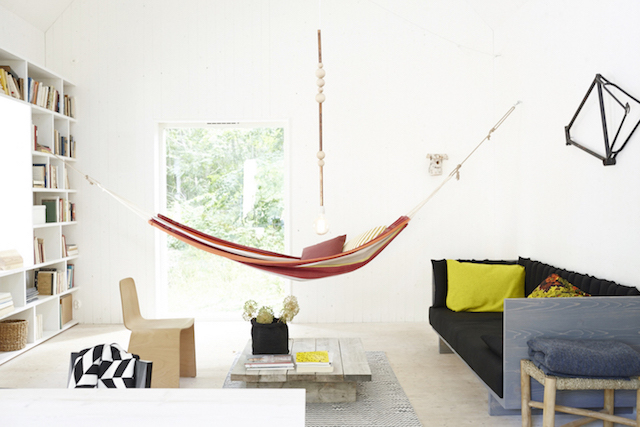 Apakah Anda memiliki rumah kecil atau tidak mempunyai area teras ataupun taman? Tidak harus khawatir, Anda masih dapat menginstalkan hammock pada sudut ruangan Anda. Hammock yang sangat cocok untuk area ruang kecil ini, memberikan Anda kesempatan untuk bergantung dari langit-langit ruang dan menjadi tempat yang pas untuk rileks.