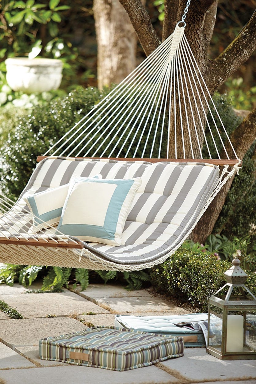 Bagi Anda yang memiliki area outdoor seperti halaman belakang atau taman, hammock seperti sangat cocok untuk Anda miliki. Hammock yang seperti ini dapat Anda ikatkan kepada pohon untuk terasa sejuk dan segar.