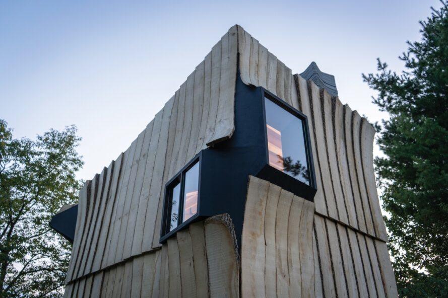 Rumah tersebut dibangun menggunakan kayu pohon ash bekas yang rusak akibat kumbang Emerald Ash Borer.
