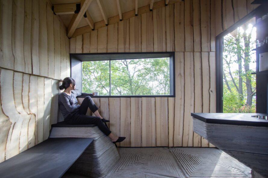 Rumah yang dinamakan Ashen Cabin ini tampil sebagai rumah sustainable modern yang dibangun menggunakan kayu dan beton yang dibentuk oleh 3D printing.