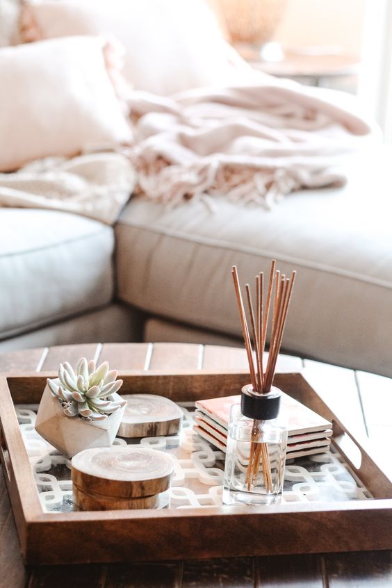 Cara mudah untuk memperoleh suasana ruang yang hangat adalah dari wangi ruangan. Tidak hanya secara visual, dengan sebuah lilin atau diffuser yang memiliki bau yang hangat dan tidak menyengat dapat membuat suasana ruang berubah. Pilihlah wewangian yang sesuai dengan selera Anda dan memiliki perfume notes yang hangat seperti musk atau spice.