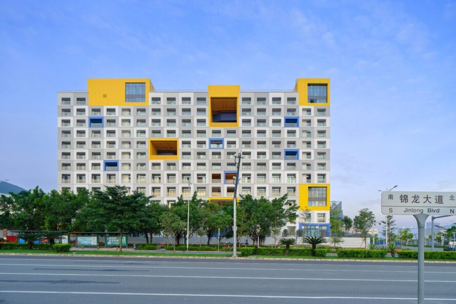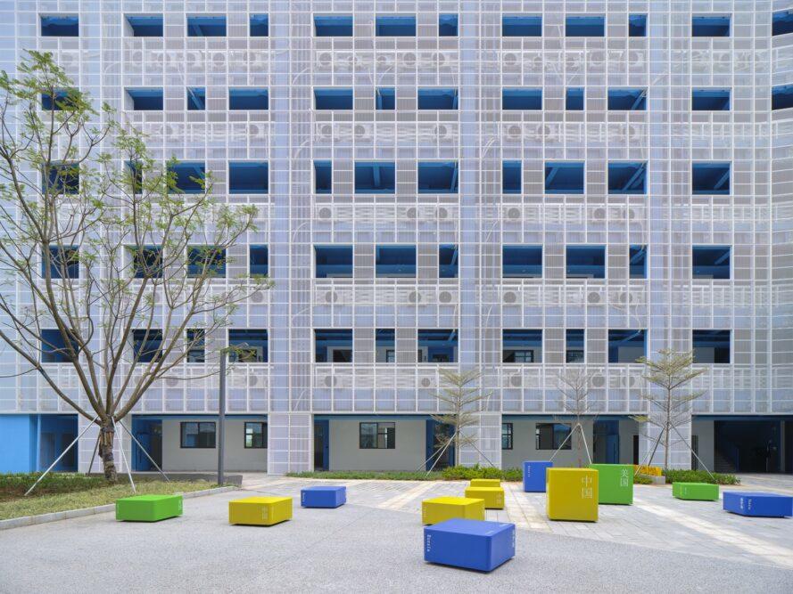 Desain sekolahnya juga merespon iklim subtropis Shenzhen dengan area publik yang sebagian besar terbuka dengan sirkulasi udara dan pencahayaan natural.
