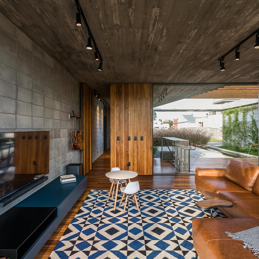 Dengan material lantai yang serupa antara living room dan teras, kedua area ini terlihat melebur dan lapang. Ruang keluarga dirancang untuk dapat berintegrasi dengan area outdoor agar memiliki fungsi yang lebih fleksibel, serta memberi sirkulasi gerak yang lebih leluasa.Â