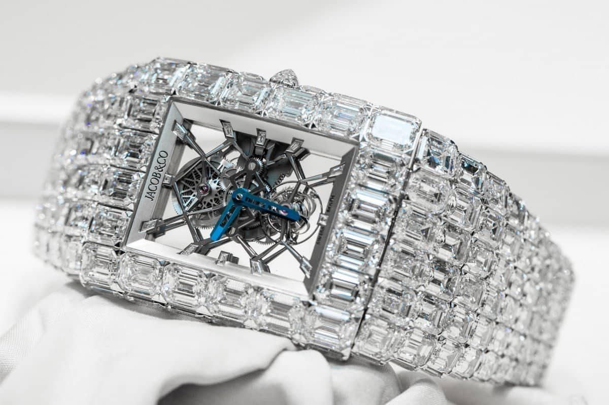 Perhiasan dan jam tangan dalam satu kesatuan. Billionaire Watch berisi 260 karat berlian yang dipotong menjadi 167 komponen lalu dirangkai dengan indah. Bagian gelang arloji terbuat dari emas putih 18K.