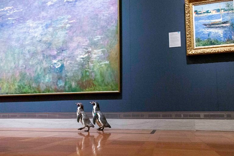 Baru-baru ini para penguin itu telah melakukan kunjungan ke galeri kosong di Nelson-Atkins Museum dalam rangka tur pribadi mereka. Ketiga penguin ini telah mempelajari apa itu seni dari baroque hingga french impressionism.