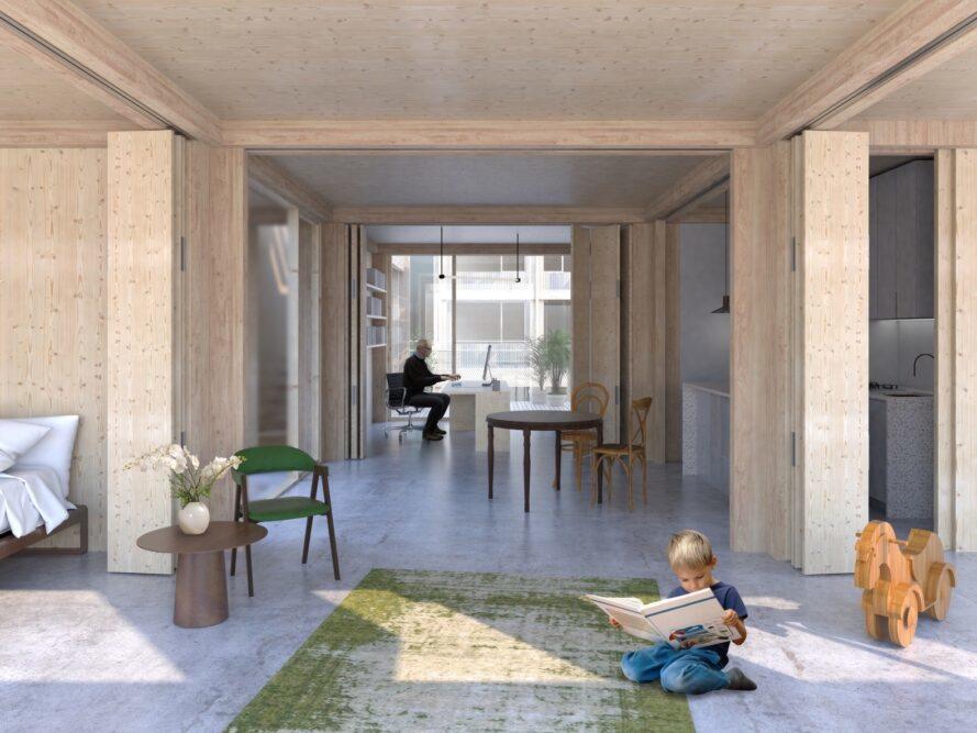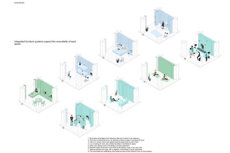 Di Prancis, biro arsitek asal Paris Studio Belem menawarkan konsep Aula Modula, konsep apartemen urban yang menekankan fleksibilitas, komunitas, dan keberlanjutan.