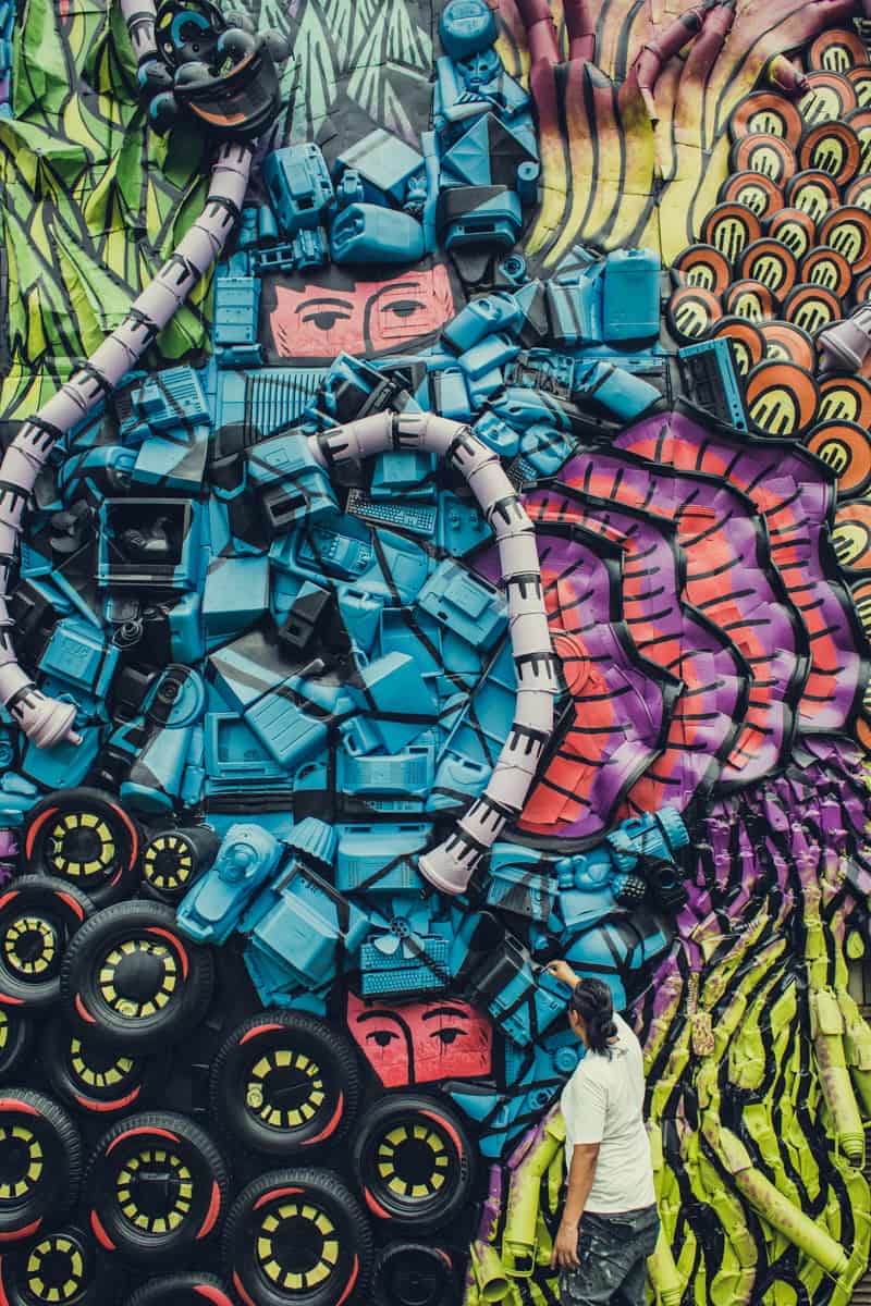 Membutuhkan waktu hingga lima minggu, barang-barang bekas tersebut disulap menjadi mahakarya menakjubkan yang tampil dalam warna-warna vibrant dan pop menghiasi fasad Potato Head Bali untuk setahun kedepan.
