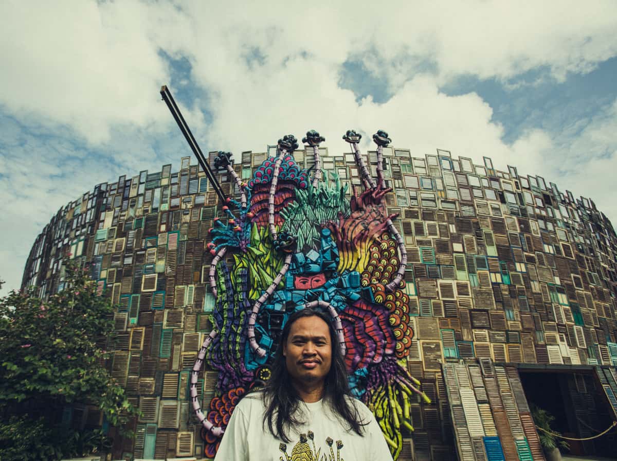Potato Head Family yang selalu mengusung konsep ramah lingkungan terutama pemakaian bahan-bahan daur ulang untuk interior maupun eksterior di setiap brand-nya ini membuat Eko Nugroho juga turut berkreasi dengan reuse material untuk karyanya.
