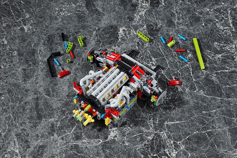 Karena Lego Technic tidak hanya sekadar pajangan, model kit ini juga memiliki girboks 8-gigi yang dapat berfungsi penuh. Fitur lain yang patut diperhatikan adalah replika mesin V12, powered steering wheel, dan warna bodi lime-green terang dengan velg berlabur warna emas.