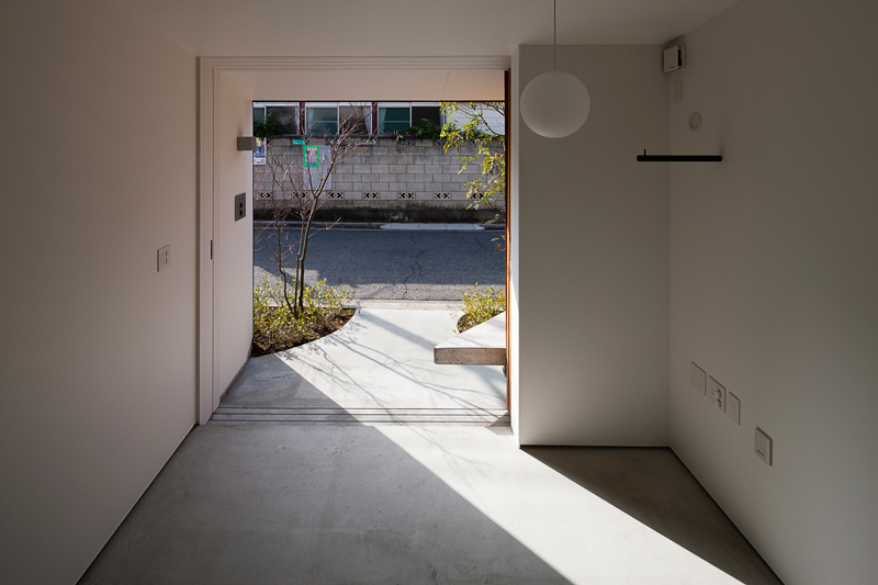 Di samping teras mungil ini, terlihat sliding door kayu yang sekaligus berperan sebagai pintu masuk pada rumah. Bagian dalam pintu ini memperlihatkan ruang yang disebut doma yang berarti dirt floor yang kerap muncul di area masuk dalam sebuah rumah tradisional Jepang.