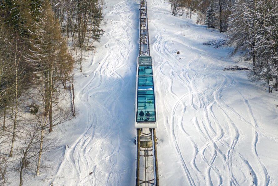 Menggandeng biro desain asal Perancis Atelier 360, trem ini hadir dengan tampilan dramatis menggunakan jendela panoramik untuk menyajikan pemandangan gunung Alpen Perancis yang indah.