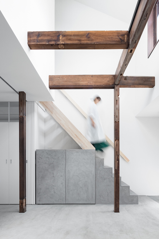 Elemen arsitektur tradisional yang rustic menambah kepribadian dan membawa kontras yang cantik pada wajah modern yang minimal dan bersih.