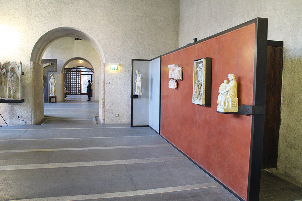 Restorasi bangunan Castelvecchio di kota Verona merupakan karya penting Carlo Scarpa yang berlangsung selama 18 tahun (1957-1975). Scarpa menginvestigasi berbagai lapisan historis pada kompleks museum yang terdiri dari beberapa bangunan secara menyeluruh. Peletakan patung Cangrande merupakan problem desain terbesar dan Scarpa berhasil memberikan solusi terbaik dengan patung diposisikan pada sebuah pedestal mengapung di area sudut pertemuan dari tiga fragmen gedung.