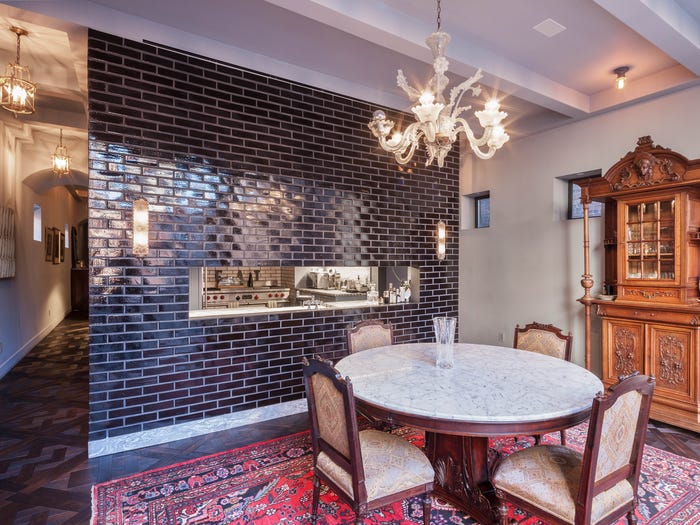 Penuh dengan modern art deco dan classic historical style, rumahnya ini memadukan materi alam dan warna yang gelap untuk mendapatkan nuansa yang tertutup tetapi tetap terasa terang.
