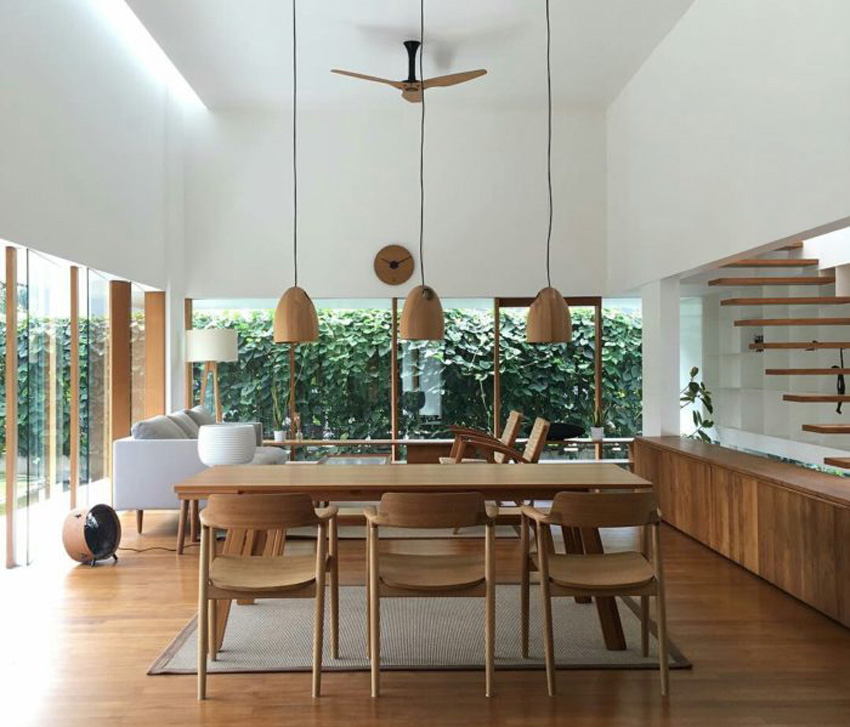 Sebagai Leo, memaksimalkan komposisi ruang menjadi sangat penting, terlihat terdapat sebuah koneksi dari satu ruang ke ruang lainnya serta langit-langit yang tinggi agar membantu membuat suasana rumah terasa maksimal dan open spaced.