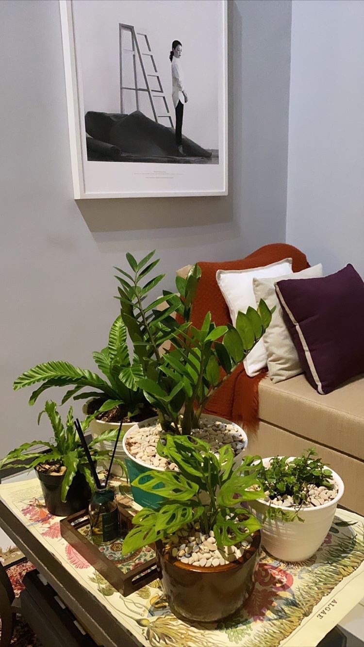 Mencari keseimbangan antara berbagai banyak desain dapat lebih mudah dengan menghadirkan tanaman hias, seperti artis dan presenter Indonesia Becky Tumewu.