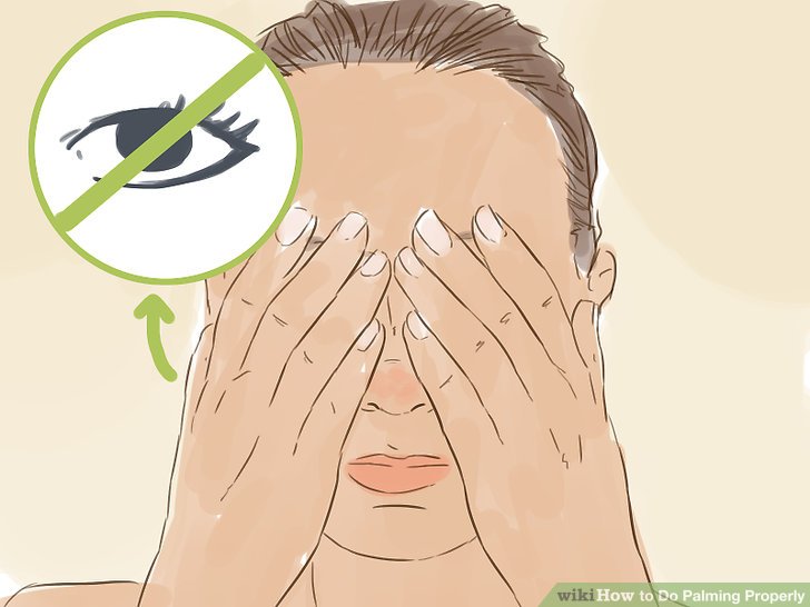 - 2. Tutup mata dan tempatkan telapak tangan Anda di atas masing-masing mata tanpa menekannya.