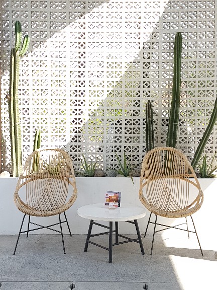 Dengan tema serba tropis, suasana restoran dua lantai ini terkesan santai dengan banyaknya pohon palem dan kaktus yang menjadi latar lansekapnya.