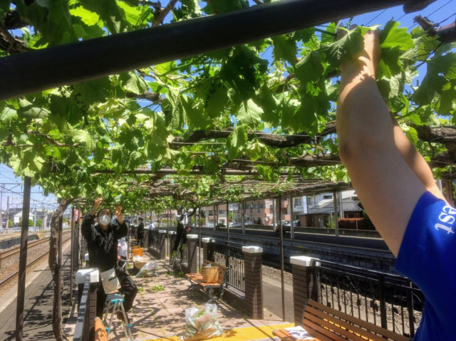 Di bawah pengawasan petani anggur Shiojiri, para relawan dan staf Japan Rail merawat kebun tersebut agar terjaga kualitasnya.