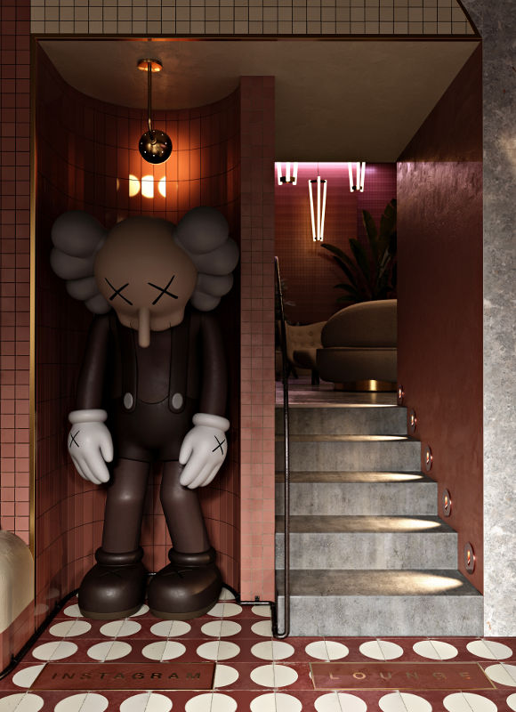 Detail Buhairest Bar yang mengagumkan tidak berhenti sampai di sini. Dibantu oleh Angelica Chernenko sebagai konsultan seni, Roman menjadikan patung seniman AS Kaws berjudul “Small Lie” sebagai pusat perhatian.