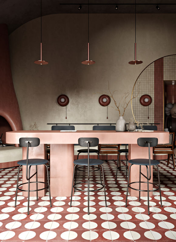 Roman sengaja mempertahankan bagian dari pabrik seperti bata merah pada window arch dan merestorasi lantai keramik polkadot pada ruangan utama. Elemen vintage tersebut lalu diikat oleh decorative plaster pada ceiling dengan cat terracotta yang menguarkan kesan natural juga elegan.