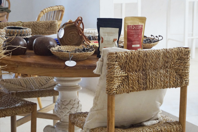 Furnitur yang digunakan juga terbuat dari bahan natural seperti kayu dan rotan hasil buatan desainer lokal. Para pengunjung juga dapat berbelanja ragam produk living dan aksesori dengan desain kreatif sebagai bentuk dukungan terhadap perajin lokal.