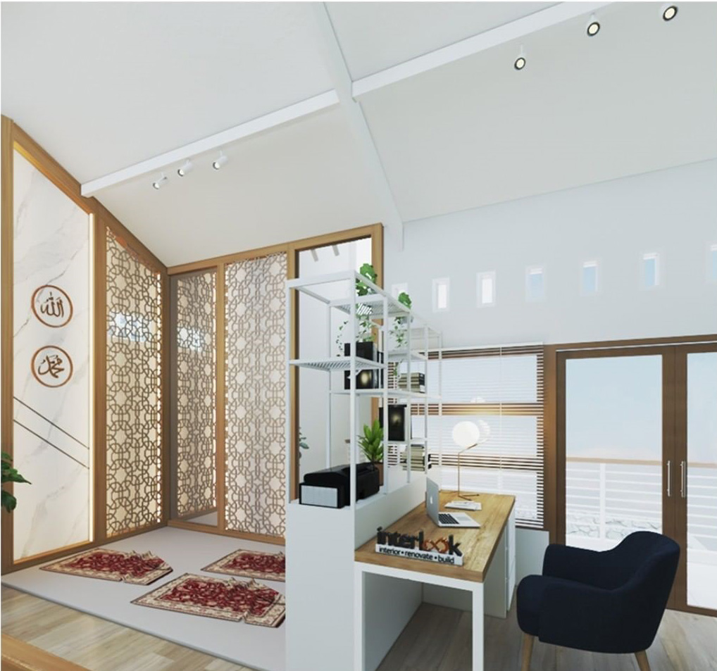 Dengan langit-langit yang landai akibat bersambungan langsung dengan atap rumah, membuat Anda musti lebih kreatif untuk merancang ujung area attic ini. Salah satu idenya adalah menyulap sudut area ini menjadi ruang kerja pribadi yang kini kian esensial di masa pandemi serta musala kecil khusus untuk keluarga di rumah.