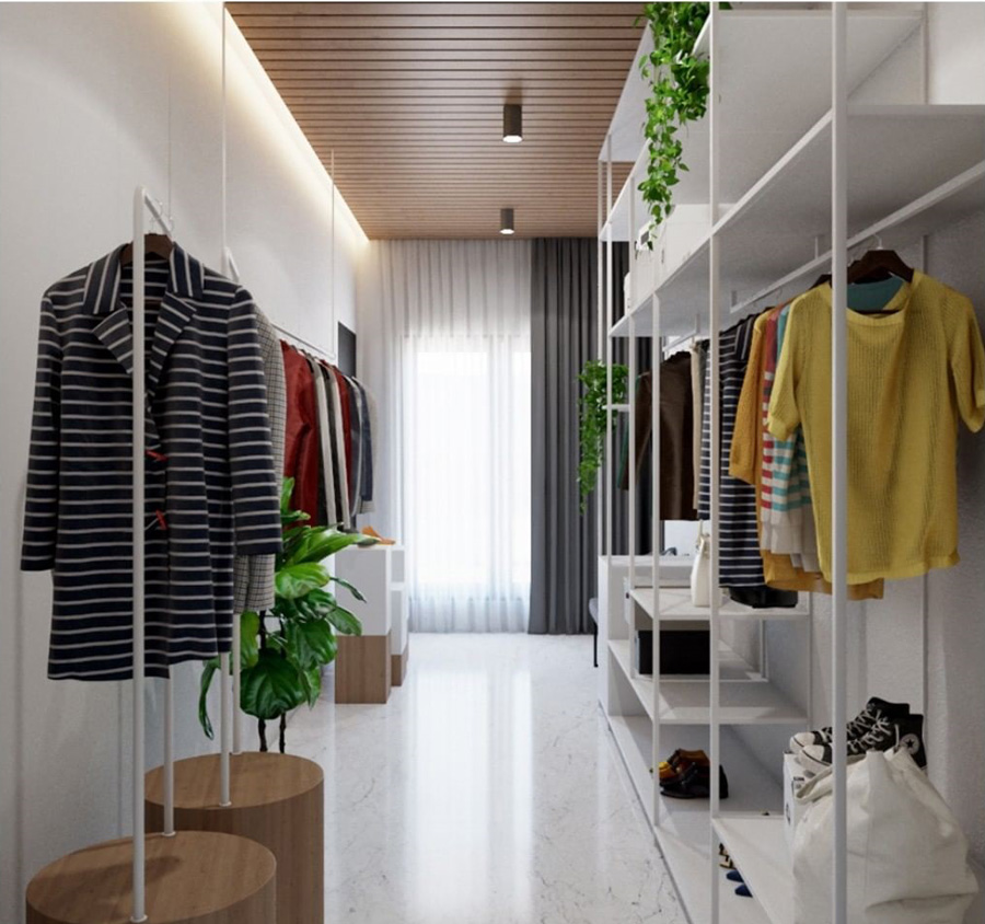 Jika di tengah proses mengolah layout untuk kamar tidur menemukan space berlebih, Anda bisa memanfaatkannya menjadi walk-in closet. Ini terutama bagi yang memiliki banyak pakaian namun tidak ingin membuat kamar terasa sempit.