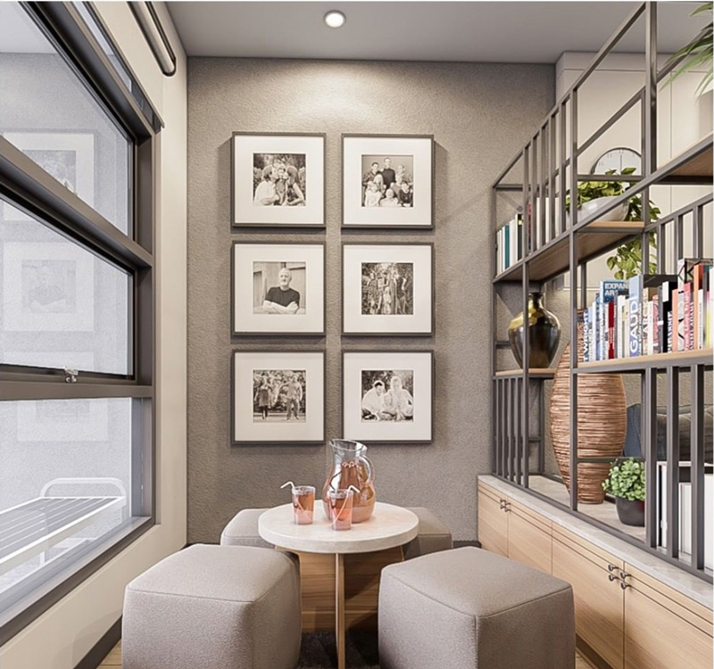 Sudut interior rumah minimalis begitu pula di apartemen bisa diubah menjadi ruang tamu bersifat lebih informal. Gunakan satu coffee table di tengahnya yang ditemani dengan rangkaian puff serta karpet yang fluffy untuk mengubah sudut rumah ini menjadi tempat jamuan kolega yang manis.