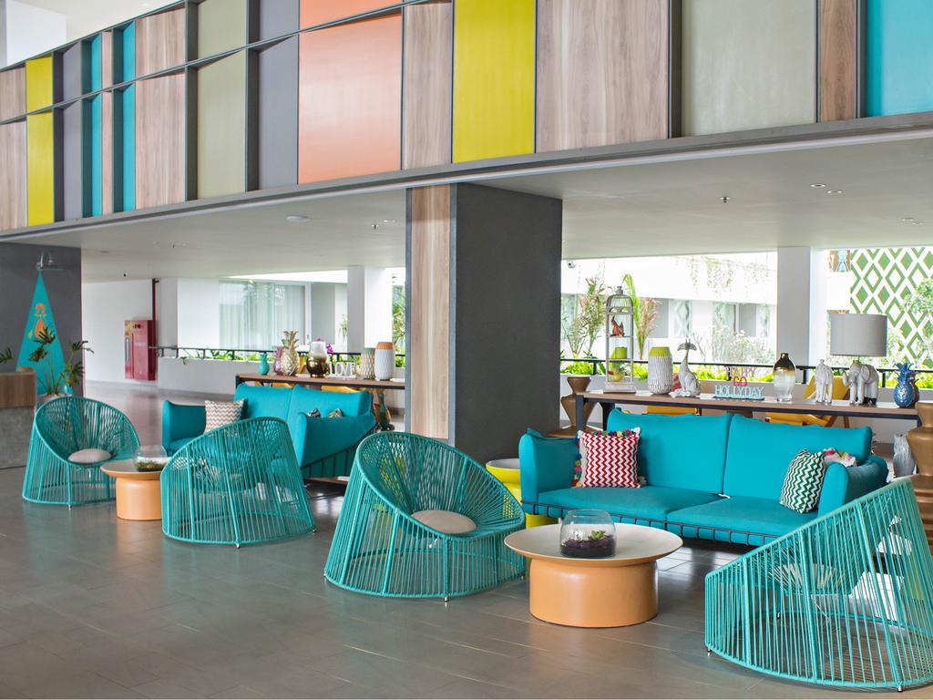 Simbol tersebut juga dapat Anda temui di hotel cabang pertamanya, Tijili Seminyak. Sapa hangat para staf dan tentunya welcome drink yang segar sigap menyambut pengunjung. Berkonsep open-lobby, warna-warna cerah seperti biru muda, kuning, jingga, dan hijau muda menjadi palet utama interior lobby.