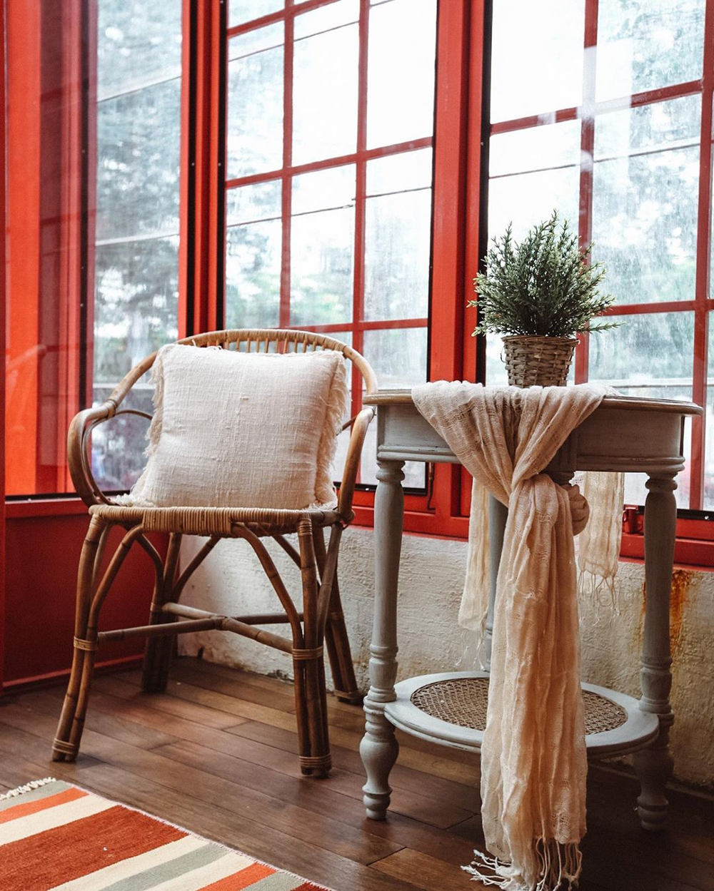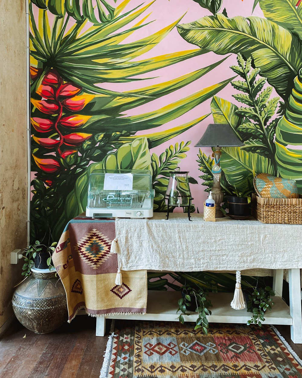 Sangat bertolak belakang dengan konsep interiornya, sang owner, menyulap bagian interior kafe ini dengan konsep tropikal dan bohemian style dengan sudut-sudut instagrammable yang cocok untuk para pengunjung millenials sekarang. Selain menawarkan tempat yang tentunya nyaman dan unik. Banyak review yang mengatakan bahwa, pastry di sini tidak kalah enak dengan tempatnya, terutama croissant yang menjadi makanan utamanya.Â