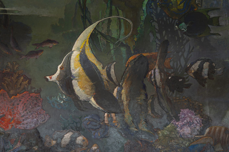 Detail lukisan “Flora dan Fauna Indonesia” (1962) karya Lee Man Fong / Dok. Hotel Indonesia Kempinski