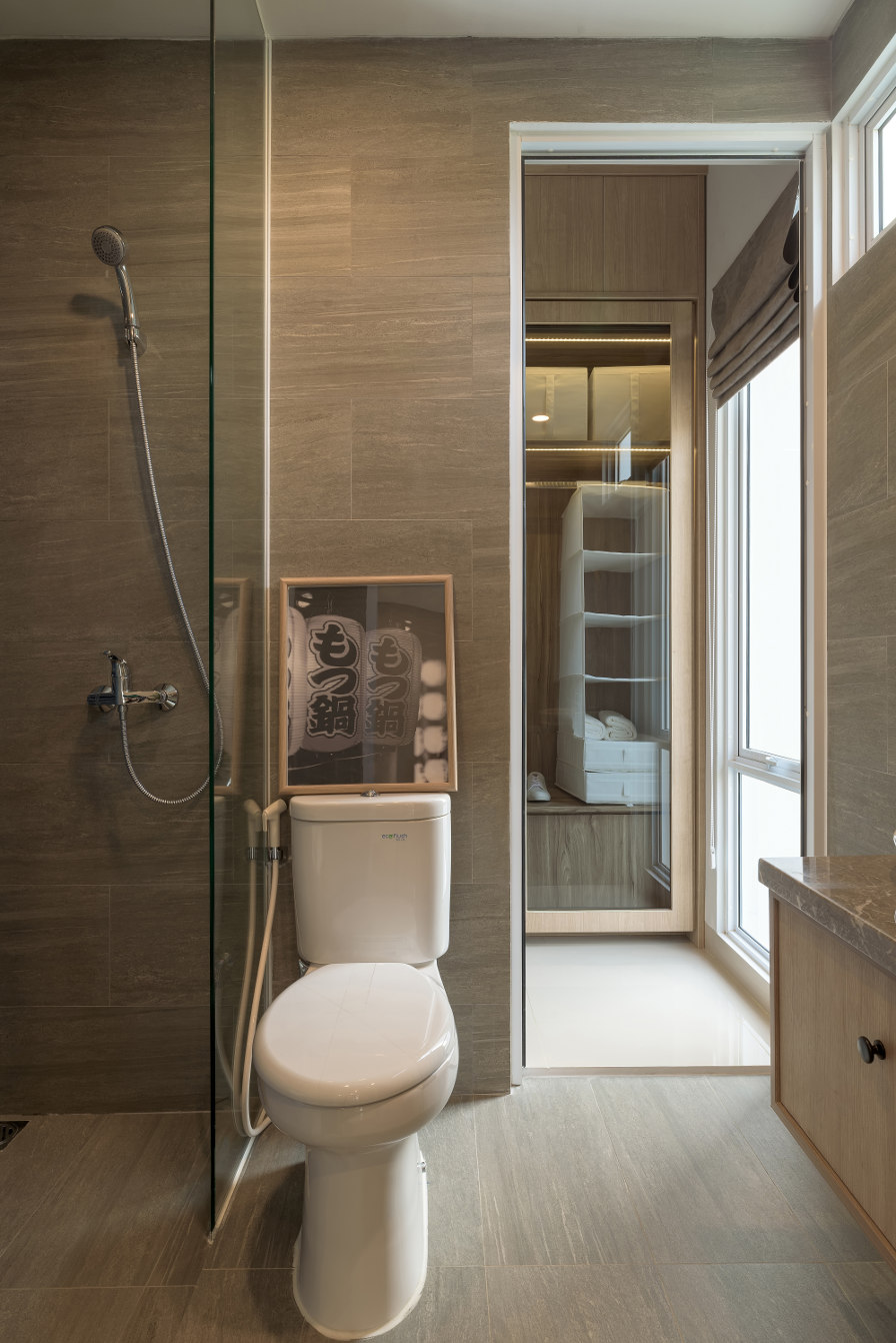 “Pada tipe 7 ini, kami menggunakan warna putih sebagai palet warna utama dan dipadukan dengan tekstur kayu yang berwarna terang. Palet ini kami pilih dengan mempertimbangkan luas bangunan yang tidak terlalu besar, karena penggunaan warna gelap akan memberikan kesan yang terlalu berat dan sempit,” jelas A2J Design Consultant.