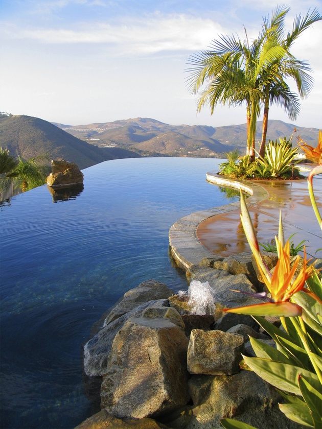 Rumah yang terletak di tanah yang lebih tinggi dari area sekitarnya cocok diberikan infinity pool, yaitu kolam renang yang bagian tepinya dirancang seolah menghilang tanpa batas.