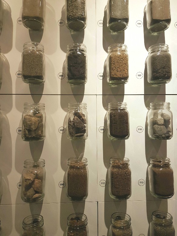 Digelar pada 8-12 November 2017 lalu di Dia.Lo.Gue Artspace, Jakarta Selatan, dalam pameran ini menampilkan 240 jenis tanah, pasir, batu yang berhasil di data dari 34 provinsi di Indonesia.