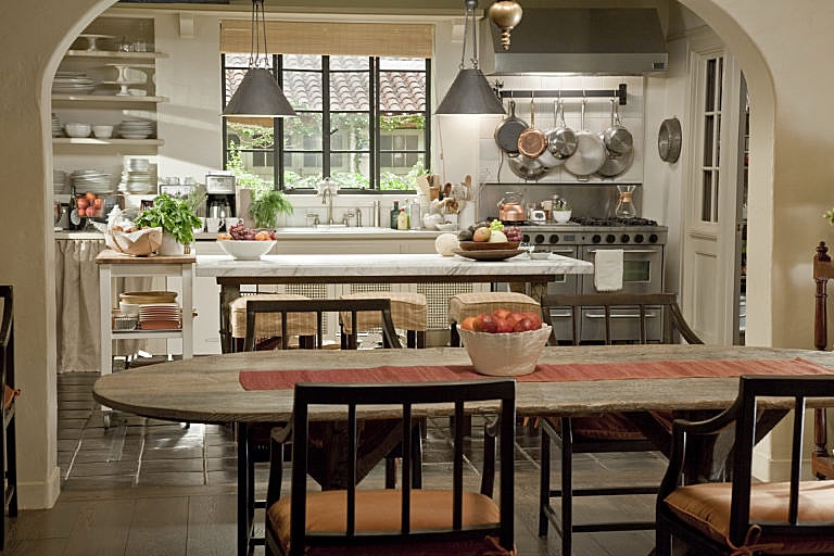 Dapur sekaligus ruang makan keluarga di setting film “It’s Complicated”.