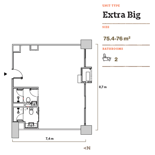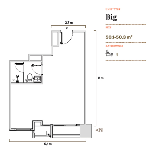 Beberapa tipe unit yang ditawarkan Big (50 m2), Bigger (65 m2), Extra Big (75 m2), Very Big (89 m2), dan Super Big (115 m2). Pemilik apartemen dapat berkreasi terhadap huniannya dimulai dengan memilih material lantai hingga langit-langit apartemen ini.