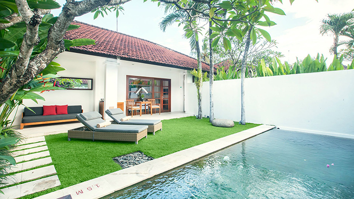 Memasuki vila-vila di Uma Sapna, interior tropis memang menjadi atraksi utama yang akan menghibur mata. Plunge pool maupun private pool di Uma Sapna berukuran cukup luas bila ingin menghabiskan waktu bersantai di vila. Program antar ruang di dalam vila yang saling terhubung membuat volume vila terasa begitu luas tanpa adanya sekat berarti yang membuat canggung. Begitu pula dengan lantai teraso yang sejuk, sangat tepat diaplikasikan pada interior vila dengan konsep terbuka di iklim tropis seperti Bali.