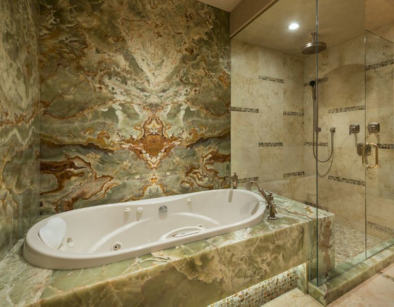 Aplikasi marmer Onyx pada kamar mandi yang super mewah (Foto: emperorhouse.com)