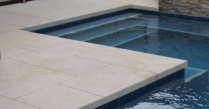 Contoh aplikasi marmer Limestone pada lantai kolam pinggir kolam renang (Foto: myfancyhouse.com)