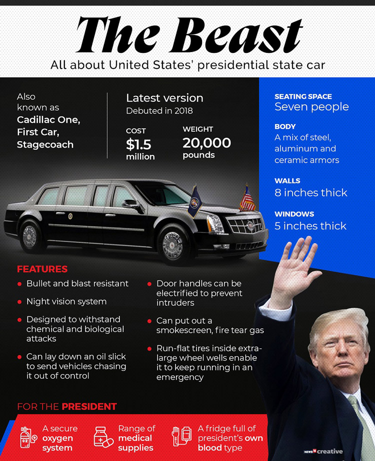 Oleh karena itu, tidak heran bila The Beast selalu mengantar kemanapun Presiden AS bertugas di seluruh penjuru dunia. Seperti kunjungan Presiden Barack Obama ke Indonesia beberapa tahun lalu misalnya, The Beast ikut menggilas jalanan ibu kota selama Presiden Obama bertandang. The Beast tidak hanya diproduksi satu melainkan beberapa untuk setiap kondisi yang diperlukan Presiden AS.