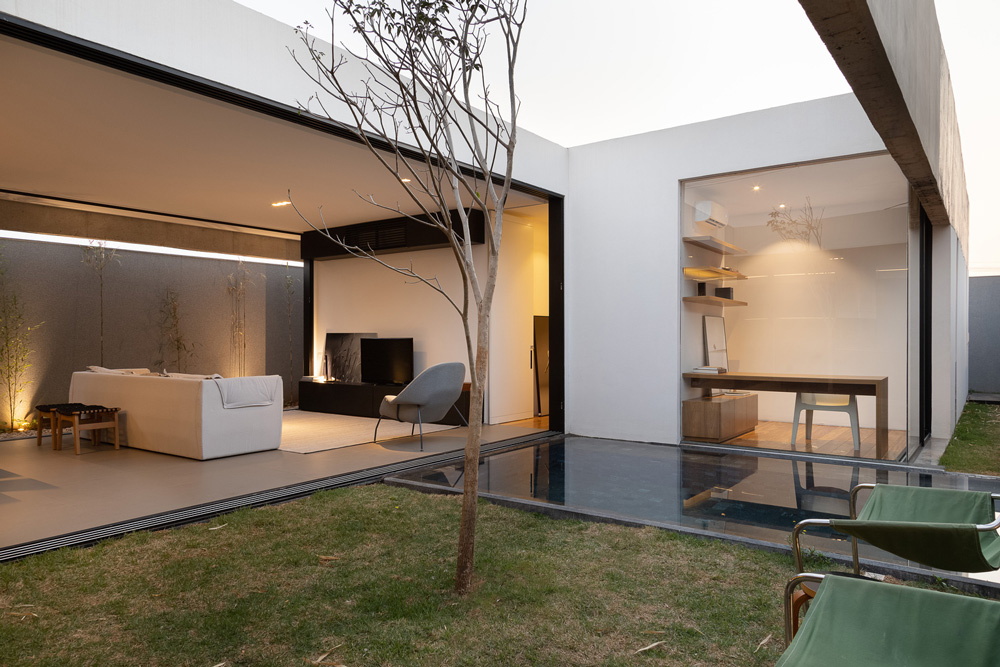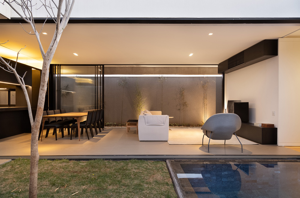 Hunian bergaya vila akan semakin cantik dengan lampu berwarna kuning dan temaram (Foto: Daniel Santo/ gruta.arquitetos/ Archdaily)
