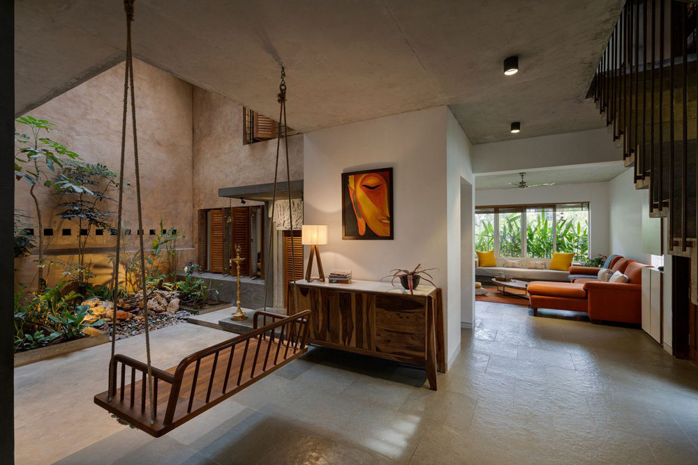 Taman kecil di dalam rumah memang cocok sebagai tempat bersantai (Archdaily/ Anand Jaju/ Greyscale Design Studio)