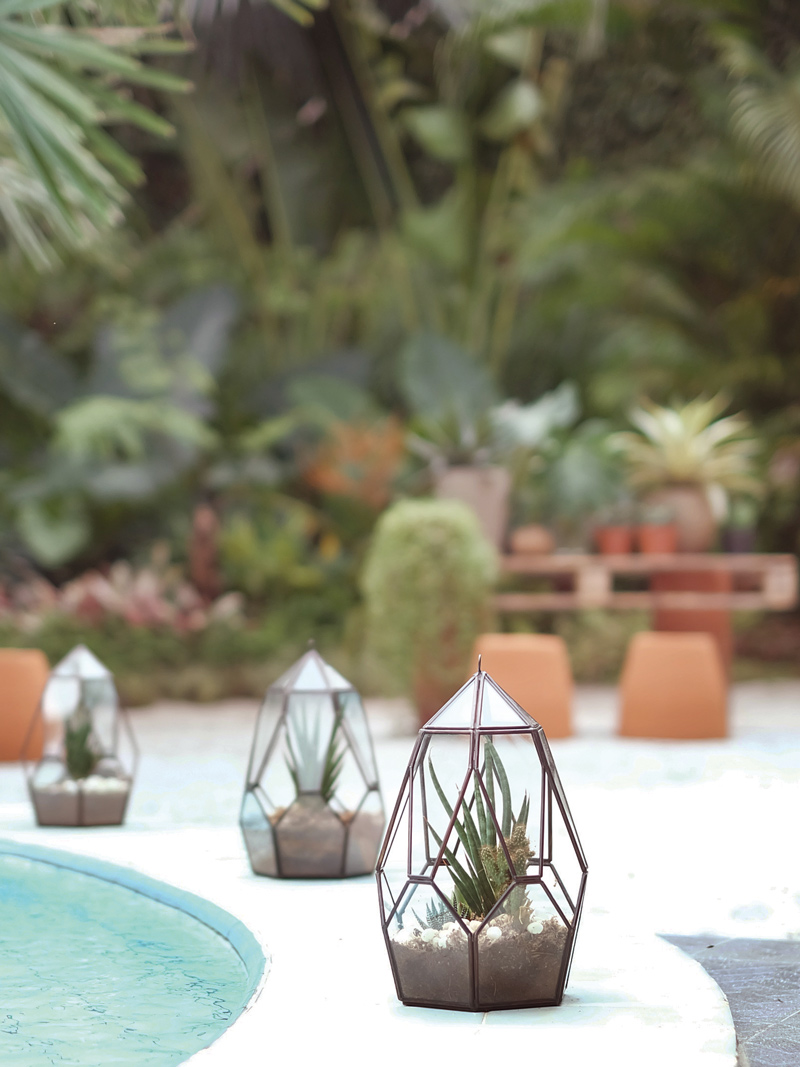 Terrarium dapat menjadi alternatif menumbuhkan tanaman dengan bentuk yang artistik. Tanaman jenis kaktus atau berdaun jarum umumnya lazim digunakan sebagai tanaman terrarium karena tidak memerlukan banyak air dan membutuhkan lingkungan yang kering. Aneka tanaman seperti silver hair, kaktus, sansevieria, dan monstera variegata adalah jenis tanaman berukuran sedang yang dapat digunakan sebagai dekorasi ruang. Tampilkan nuansa tropis menyegarkan dengan menghadirkan tanaman pada table setting untuk bersantai bersama orang-orang terdekat.