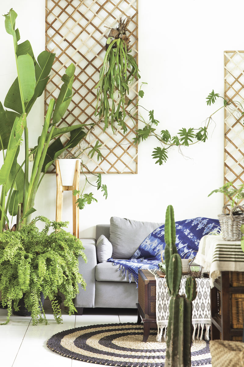 Menciptakan ‘ekshibisi mini’ pada hunian dengan aneka tanaman hias yang ditata apik akan memberikan paras ruang berbeda. Tanaman seperti pisang hias, jenis pakis, dan monstera variegata adalah beberapa tanaman yang sedang menjadi tren urban greenery bergaya tropis saat ini.