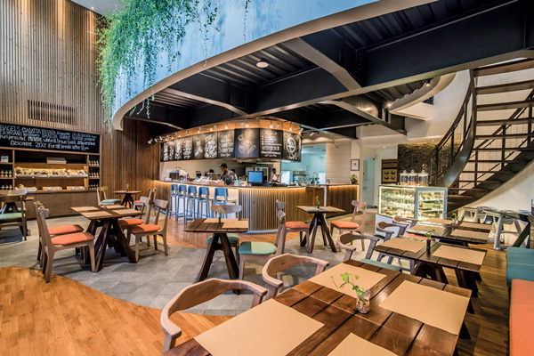 Berlokasi di Plaza Indonesia, interior restoran bergaya Parisian modern dengan nuansa warna netral tampil kontras dengan sajian makanan yang penuh warna.