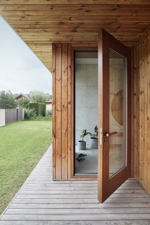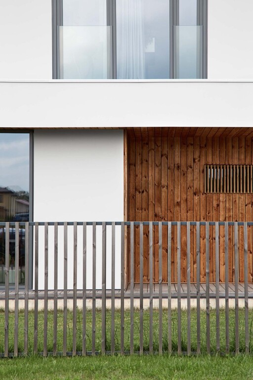 Terletak di pinggiran kota Riga yang merupakan lingkungan padat penduduk, sang arsitek paham betul dengan isu privasi di lingkungan tersebut. Rumah ini menghadap ke jalan utama, namun sang arsitek membentuk sebuah plat horizontal untuk mengarahkan balkon ke arah taman dan atap sempit ke arah depan jalan. Kemudian atap juga dibentuk dengan plat horizontal yang sama dengan kontur yang berulang secara vertikal.