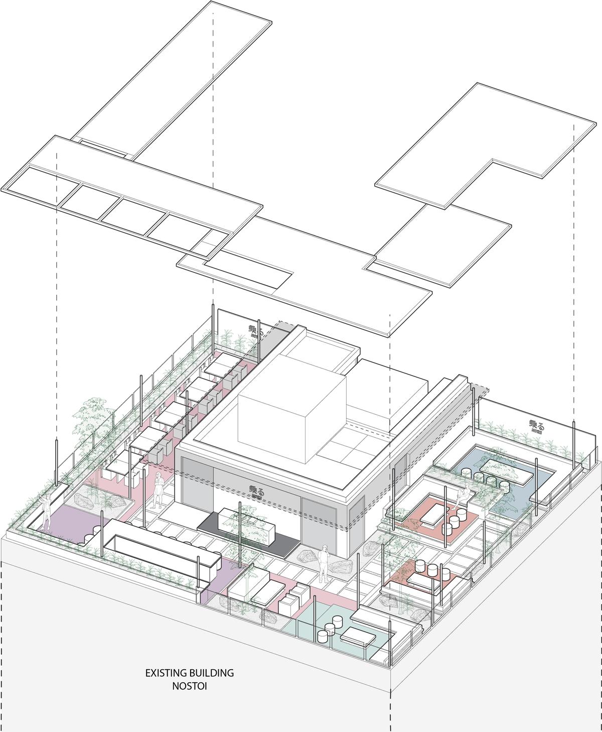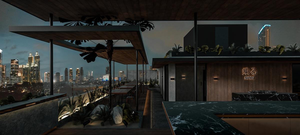 Namun, K-Thengono Design melakukan sebuah gebrakan untuk merespon isu tersebut. Hadir dengan nama “Noru” sebuah bar beserta taman dan lounge di atas sebuah gedung di Kuningan, Jakarta Selatan, dibuat dengan atap tumpang-tindih yang menangkap pemandangan cakrawala kota Jakarta dengan sentuhan alam di sebuah area seluas 300 m2.