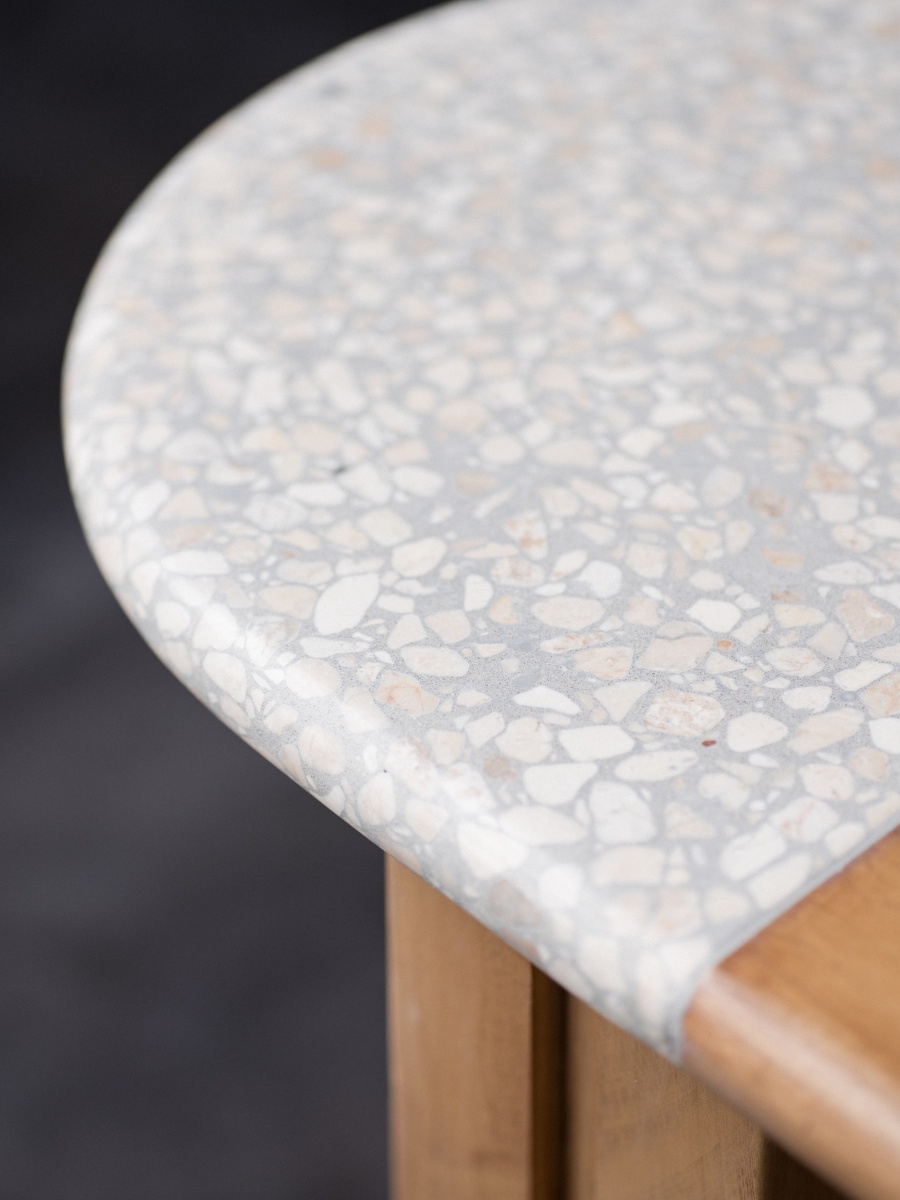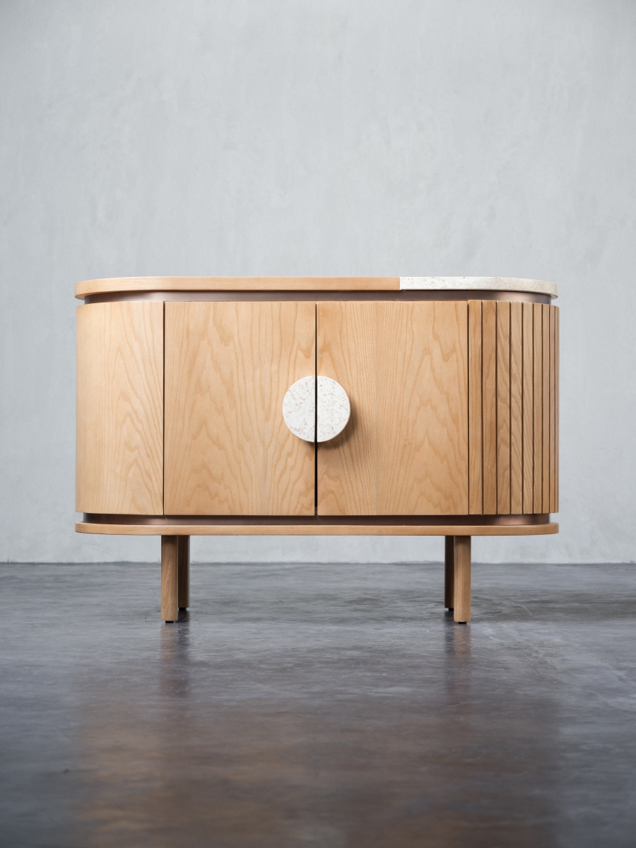 Koleksi yang diberi nama Collection One: Flow ini terdiri dari credenza, stool, side table, accent table, hingga cermin yang dirancang menggunakan kombinasi material kualitas terbaik yang sustainable. Material yang digunakan merupakan gabungan dari kayu sungkai, kain dari bahan polyester dan bahan daur ulang PET yang ramah lingkungan.