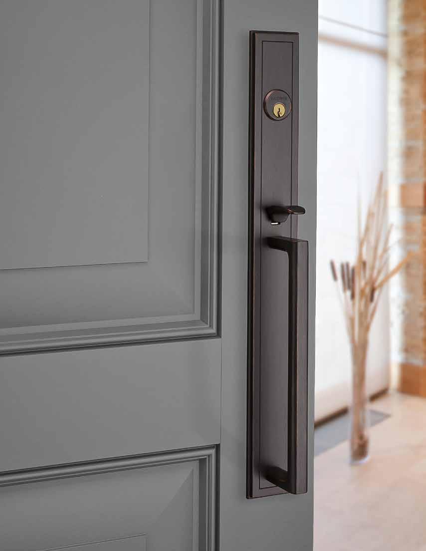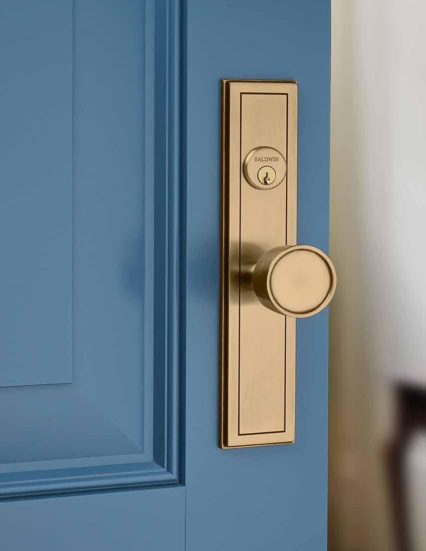 Baldwin juga melengkapi pengunci pintu baja ganda untuk keamanan maksimal. Pilihan bentuknya cukup beragam, mulai dari full handle sets, single appliance pull, knob, hingga deadbolt. Beberapa finishing yang ditawarkan seperti polished brass, satin brass and black, oil-rubbed bronze, dan lainnya.